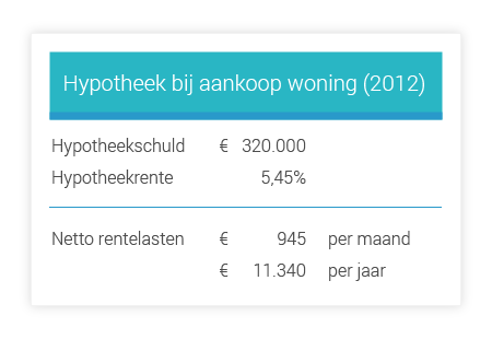 Vier jaar geleden kochten Wim en Marjan hun huidige woning. Een mooie 2-onder-1-kap die ze voor € 400.000 konden overnemen. Vanwege een flinke overwaarde op hun vorige huis hadden ze slechts € 320.000 financiering nodig. Ze sloten een aflossingsvrije hypotheek bij Delta Lloyd, met een rente van 5,45% voor 10 jaar vast.