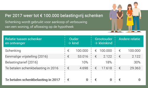 In 2017 weer tot € 100.000 belastingvrij schenken