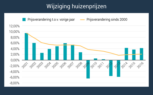 Rendement op huizenmarkt 2,1% sinds 2000