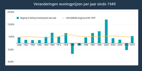 Huizenmarkt: stijging huizenprijzen sinds 1949