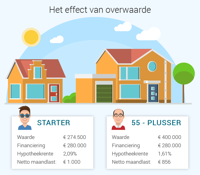 Jonge starters hebben last van de stijgende huizenprijzen. Vooral in de grote steden lopen de huizenprijzen door schaarste hoog op. 55-plussers hebben daar minder problemen mee, omdat zij vaak hun vorige huis duurder verkocht hebben. Als ze die overwaarde ook in hun nieuwe huis steken, profiteren ze bovendien van een rentekorting.