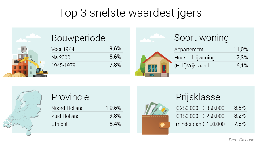 Grote winsten worden vooral gemaakt in de Randstad. In andere provincies hield het lange tijd niet over. Verschillen zijn er nog steeds, maar de waardestijgingen vinden inmiddels overal plaats.