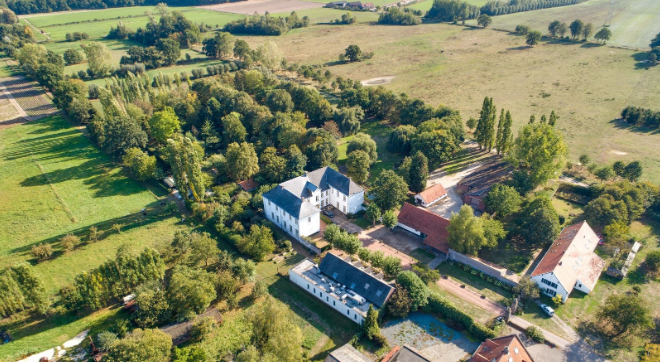 Midden in de bossen aan het water van riviertje De Vycie ligt deze monumentale ronde stenen poldermolen op een perceel van 46020 m². De molen is een aantal jaren geleden verbouwd als woonhuis en wordt omgeven door water. Dichtbij de molen staat nog een bijgebouw inclusief alle voorzieningen en in het bos bevindt zich nog een oud gemaaltje (atelier) en een voormalige paardenstal.